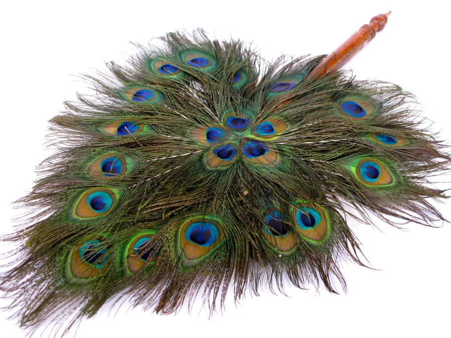 Title (ebay affiliate link): Beautiful vintage theatrical peacock feather ladies fan - very Moulin Rouge.