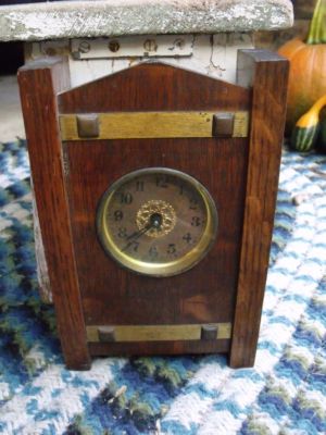 GORGEOUS Antique Early 1900s Arts & Crafts Era Tiger Oak Clock