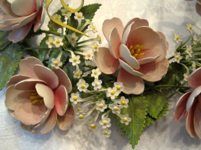 Tole Painted Metal Floral Wreath Shabby Victorian Roses