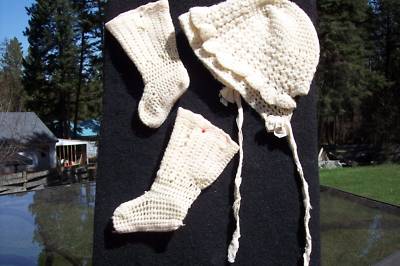 Antique/Vintage bootie socks hat for composition doll