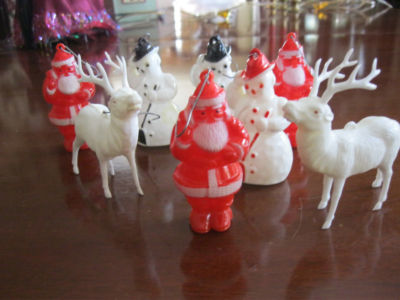 8 Vintage 1950s Celluloid Christmas Ornaments