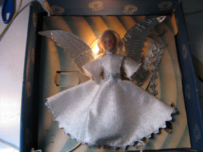 Title (ebay affiliate link): Vintage Antique NOMA Christmas Halo Angel Tree Topper Composite face and arms