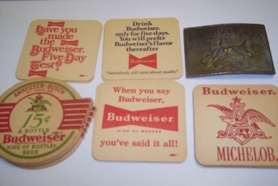 Title (ebay affiliate link): Budweiser beer RARE coaster collection & belt buckle L@@@@K!!!!!!