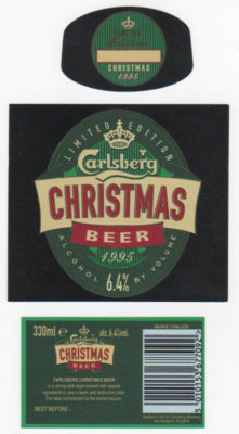 Title (ebay affiliate link): Carlsberg Brewery, Northampton. 1995 Limited Edition Christmas Beer label