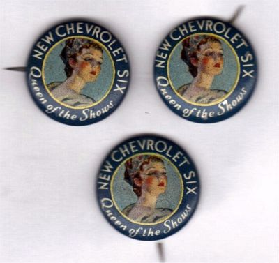 Title (ebay affiliate link): 3 NEW CHEVROLET SIX Queen of the Shows -Vintage PINBACK BUTTON (NICE CONDITION)