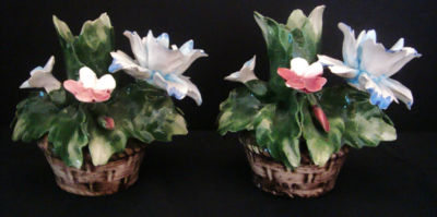 PAIR OF CAPO DI MONTE FLORAL CANDLE HOLDERS