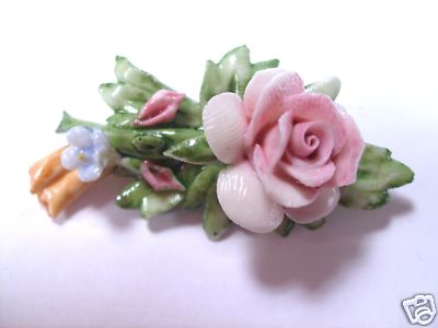Antique vintage capodimonte porcelain flowered brooch pin must see this one