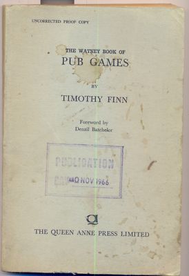 THE WATNEY BOOK OF PUB GAMES TIMOTHY FINN PROOF COPY QUEEN ANNE PRESS 1966