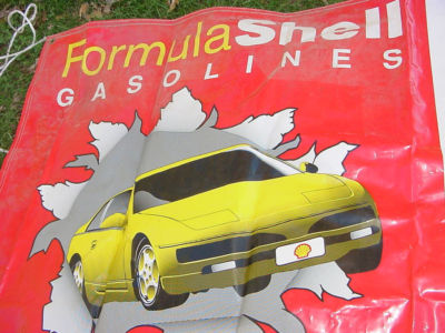 1980s Vintage SHELL FORMULA GASOLINE / COCA COLA Banner Sign with CAR