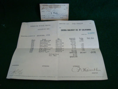Title (ebay affiliate link): SIERRA RAILWAY COMPANY, TICKET ORDERS, 1918 & 1909 RIO GRANDE COAL TICKET