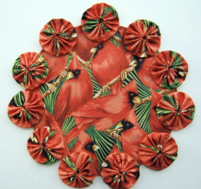 Title (ebay affiliate link): Cardinals in Pine Trees Winter Holiday YoYo Candle Mat Doily Centerpiece