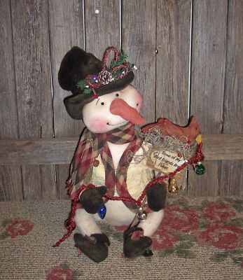 Title (ebay affiliate link): Primitive Whimsical Ole' Max Winter Snowman DOLL PATTERN Red Bird n Sign 16"