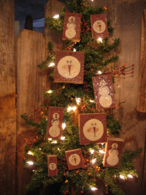 Title (ebay affiliate link): 9 Primitive HP Folkart Christmas Ornies ~ GLITTERED SNOWMEN ~ OOAK