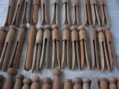 Title (ebay affiliate link): 39 Vintage Wooden clothespins wire wooden Primitive Country craft laundry lot
