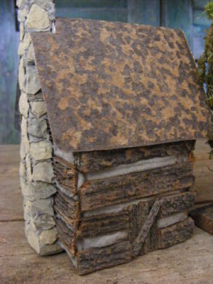 Title (ebay affiliate link): HANDMADE LOG CABIN W STONE CHIMNEY FARM PAT BROYLES