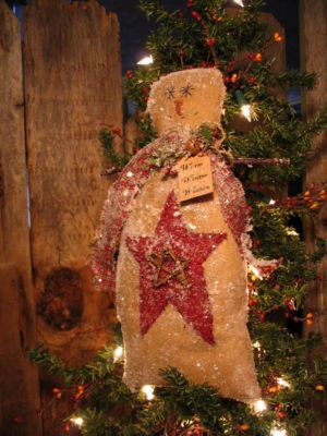 Title (ebay affiliate link): PRIMITIVE Stick Arm SNOWMAN Star Bell Warm Winter Wishes Tag SIGN 12" TALL
