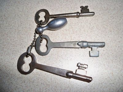 Title (ebay affiliate link): LOT OF 3 VINTAGE SKELETON KEYS WITH ALUMINUM BOWLING PIN CHARM KEY CHAIN