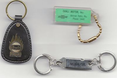 Title (ebay affiliate link): 3 Vintage Auto- Gas& Oil Companies: Chevrolet-Gulf-Mobil -Key Chains