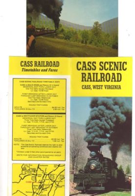 Title (ebay affiliate link): 1960s CASS SCENIC RAILROAD CASS WV COLORFUL ILLUSTRTED BROCHURE & POSTCARD