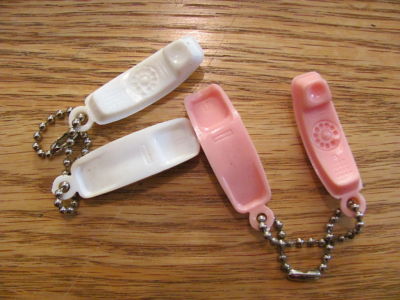 Title (ebay affiliate link): Vintage Miniature Telephone Keychains Trimline Rotary Model Pink and White