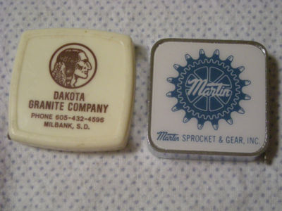 2 Vintage Mini Advert Tape Measures - Dakota Granite & Martin Sprocket & Gear