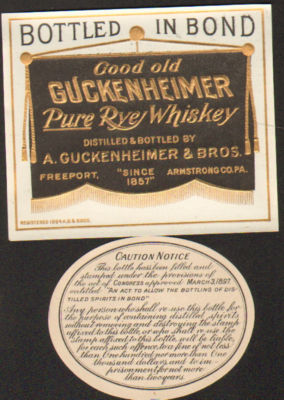 Title (ebay affiliate link): PAIR UNUSED 1890S LABELS, GUCKENHEIMER PURE RYE WHISKEY, FREEPORT, PA.