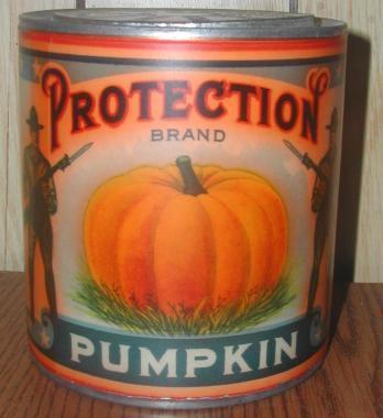VINTAGE PROTECTION BRAND PUMPKIN ADVERTISING TIN WWI MENDON OHIO OH HAMILTON