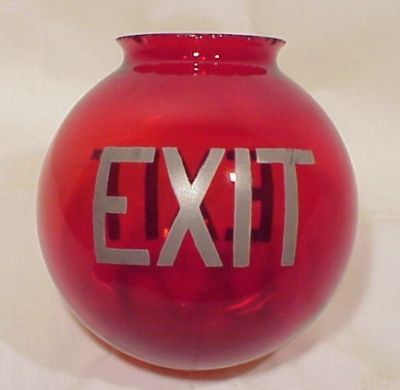 Title (ebay affiliate link): RARE VINTAGE 1920s RUBY RED GLASS EXIT SIGN LIGHT GLOBE SHADE