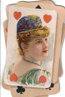 Gail & Ax Navy Long Cut Die Cut Lady Playing card 4 hearts Tobacco card