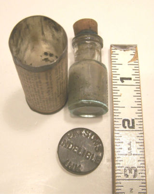 VERY OLD PAYSON FOUNTAIN QUILL PEN INDELIBLE INK BOTTLE W/ TIN LABEL1853