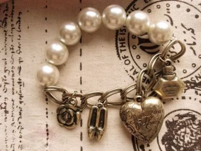 Title (ebay affiliate link): Antique Retro Pearl Heart Shoes Perfume Bracelet Z047