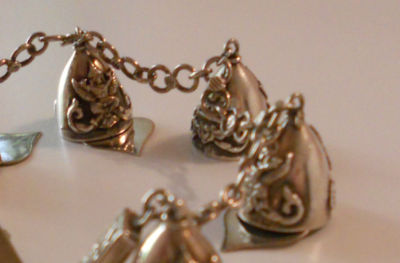 Title (ebay affiliate link): Antique Silver Bell Heart Charm Bracelet Asian Buddah Theme Orient Travel
