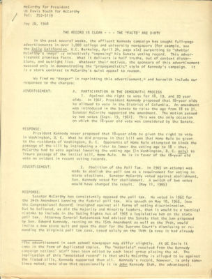 McCarthy for President. The Record is Clean-Facts are Dirty (1968)