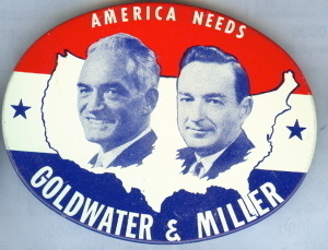 AMERICA NEEDS GOLDWATER, MILLER JUGATE OVAL PIN