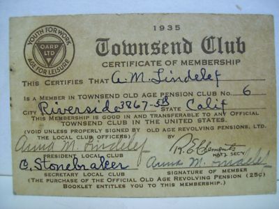 Social Security stuff: TOWNSEND CLUB MEMBERSHIP CARD 1935