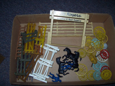 Title (ebay affiliate link): Box Lot of Plastic Western Items..Roy Rogers..Fence..Wagon Wheels Etc.