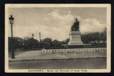 Antique postcard Nubar Pacha monument, Alexandria