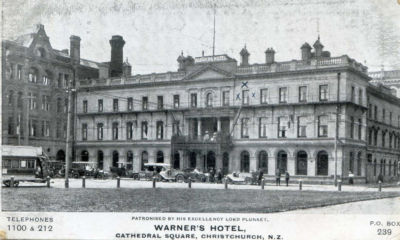 1910s trade postcard Warner's Hotel Cathedral Square Christchurch New Zealand