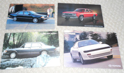 1978 Chevy Nova 1986 Ford Tempo 1992Toyota Celica & Saab 900 Turbo postcards