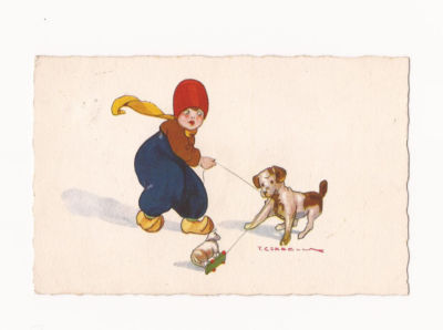 ARTIST SIGNED.T CORBELLA .LITTLE DUTCH BOY WITH HIS DOG.1925