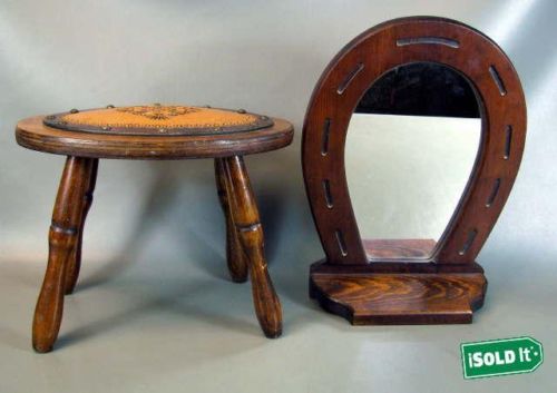 Title (ebay affiliate link): HANDMADE WESTERN MOTIF HORSESHOE MIRROR AND WESTERN STYLE FOOT STOOL NR
