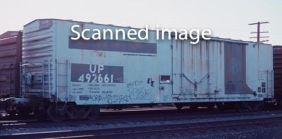 Title (ebay affiliate link): UP 492661 - ex-ROCK 50' plug door box car - original Kodachrome (A&I) slide