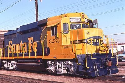 ATSF Santa Fe EMD GP30 #3232, original slide, 1977.