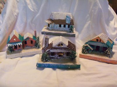 Title (ebay affiliate link): 4 VINTAGE MICA PUTZ HOUSES "LOGGIES" W/6" BASES ESTATE FIND
