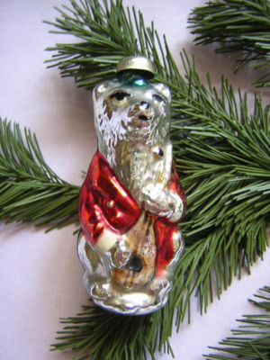 OLD RUSSIAN GLASS CHRISTMAS ORNAMENT BEAR