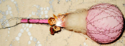 Antique Wire Wrapped Christmas Ornament Balloon PINK Cherub Vintage Victorian