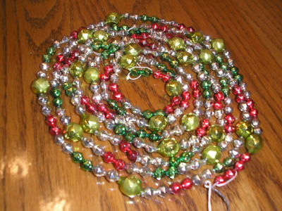 Title (ebay affiliate link): Vintage Faceted Merc Bead Glass Garland 88" Greens Red Silver None Broken
