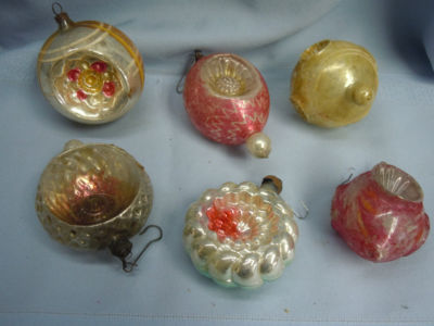 6 OLD Unusual Mercury Glass Christmas Ornaments