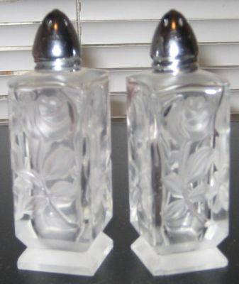 Salt & Pepper Shakers Frosted Cut Glass Rose Impression