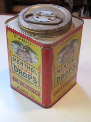 Title (ebay affiliate link): ORIG Menthol Cough Drop Lithographed Advertising Tin, Bone, Eagle Co, Reading PA
